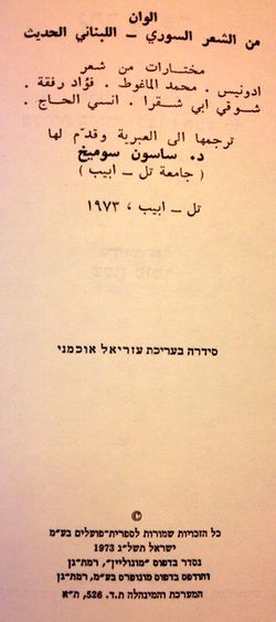 מבחר תרגומים משירת סוריה ולבנון הצעירה