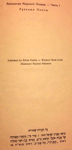 הוצאת הקבוץ הארצי השומר הארצי בהשתתפות מוסד ביאליק