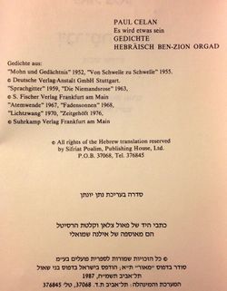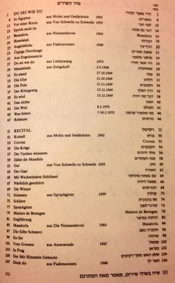 | 70 | קולות | 1959 | aus Sprachgitter | Stimmen | 71 | |||||
