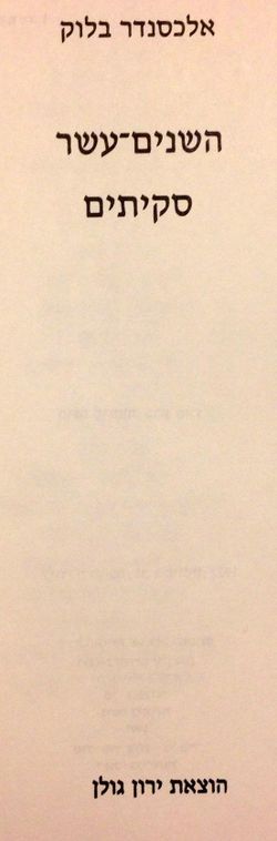 | התרגום העברי הראשון של השנים-עשר (מאת טוביה לוין) נדפס בירחון "האדמה" י-יא תר"פ (1920) |