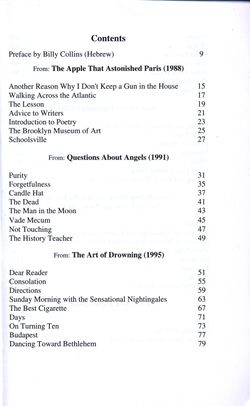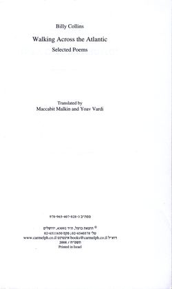 | הקדמה לתרגום העברי מאת בילי קולינס | 9 | (Preface by Billy Collins (Hebrew | ||