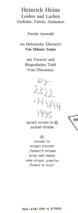 ins Hebräische Übersetzt Von Shlomo Tanny