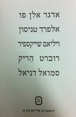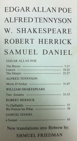 משל: אדגר אלן פו, אלפרד טניסון, שייקספיר, רוברט הריק, סמואל דניאל