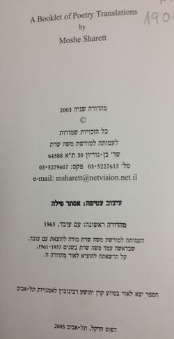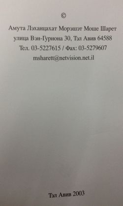 (Предисловие Моше Шарета к первому изданию (на иврите |