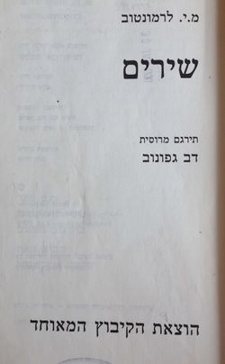 (התוכן זהה כמעט כולו לתוכן הספר שירי מיכאיל לרמונטוב, הכולל גם את שמות השירים במקור. ישנם הבדלים קלים בסדר השירים, שמות כמה מהשירים שונים, וב"שירי מיכאיל לרמונטוב" מופיע שיר נוסף שלא מופיע כאן.)