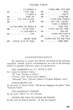 For permission to translate into Hebrew and include in this anthology copyrighted material, grateful acknowledgments are made to the following holders of copyright, publishers, agents or representatives: