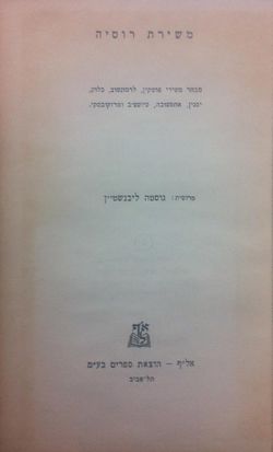 מבחר משירי פושקין, לרמונטוב, בלוק, יסנין, אחמטובה, טיוטצ'ב ומרזקובסקי.
