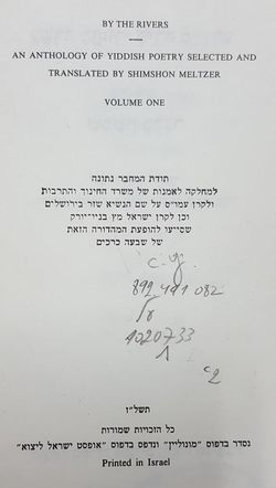 על נהרות / עשרה מחזורי שירה מספרות יידיש / כרך ראשון / כרך שני