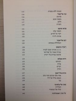 - זביה ח'מיס אל-מוסלימאני / בריחה אל קצה מדרגות ההֶעדר, סעדיה מופרח / למה, הודא חוסין / כעס, עזיזה אחדיה עומר שקוארי / אל תבקש ממני רשות, הודא חוסין / חניטת הציפור, מראם אל-מסרי / נשים כמותי, ר'אדה א-סמאן / מעידה אנוכי על שהריאר, הודא אבלאן / דברים, ניסיון, פדוא טוקאן / יקוד על לחיים (קישור)