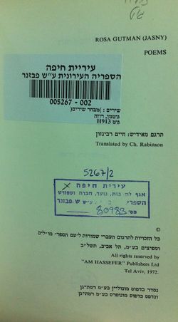 | מבחר שירים (תרגום לאידיש ר. גוטמן) | 52-71 |