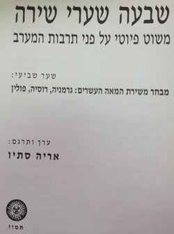 שער שביעי: מבחר משירת המאה העשרים: גרמניה, רוסיה, פולין (קישור לגרסה באינטרנט)