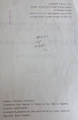 תרגום מרוסית לעברית: דב (בוריס) גפונוב