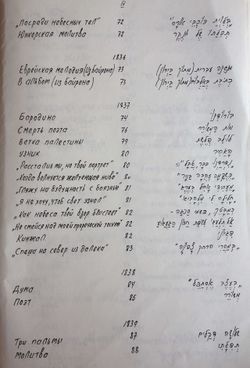 | אל * ("שלום! - לא אראךְ עוד בתהו") | 67 | К *("Прости! - мы не встретимся более") | |