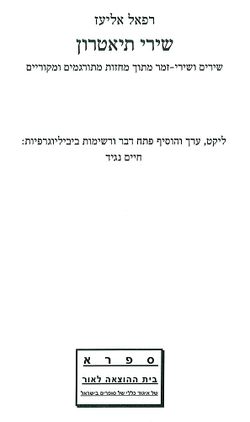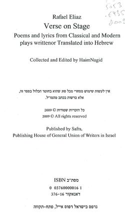 Poems and lyrics from Classical and Modem plays written or Translated into Hebrew
